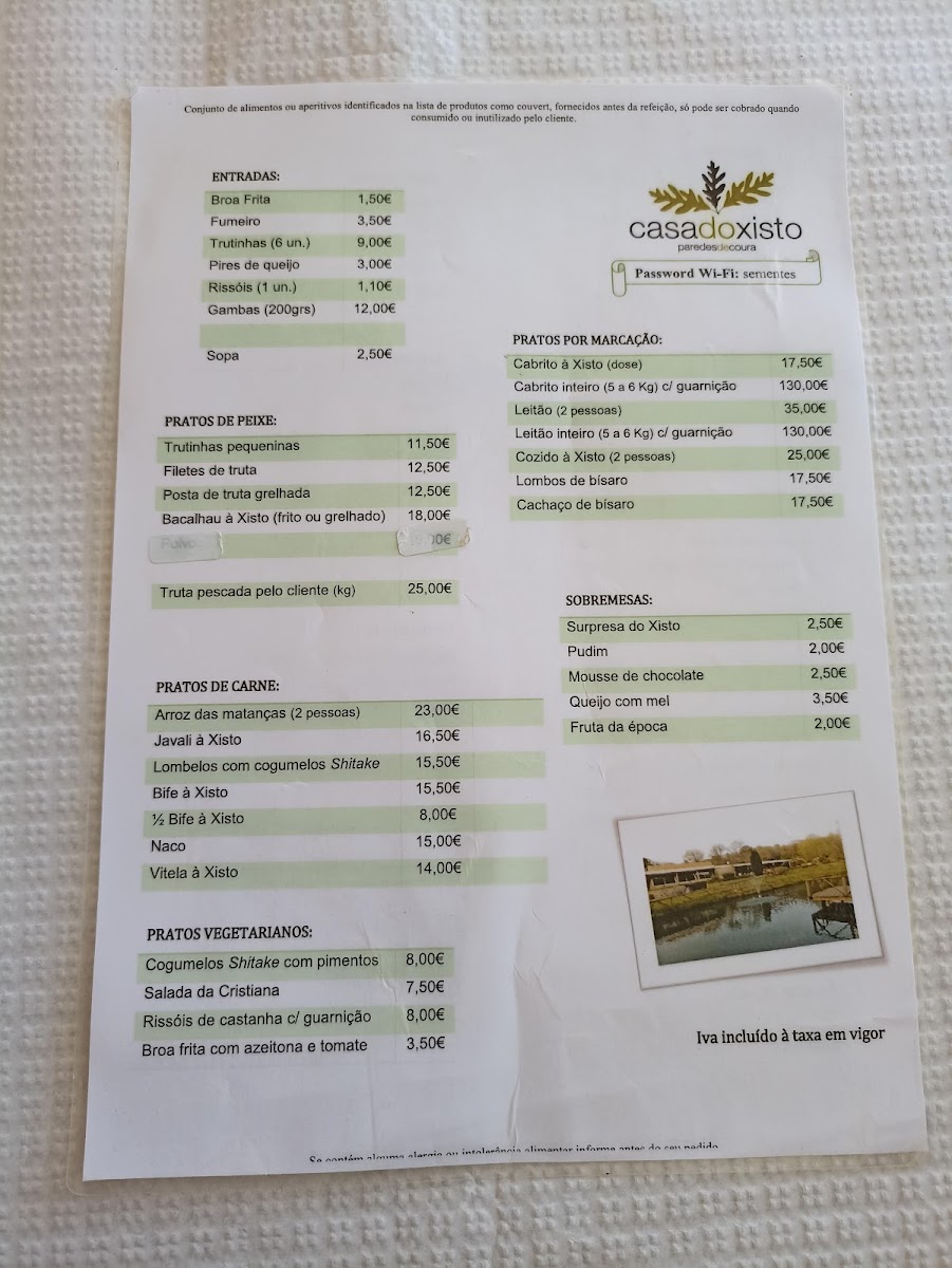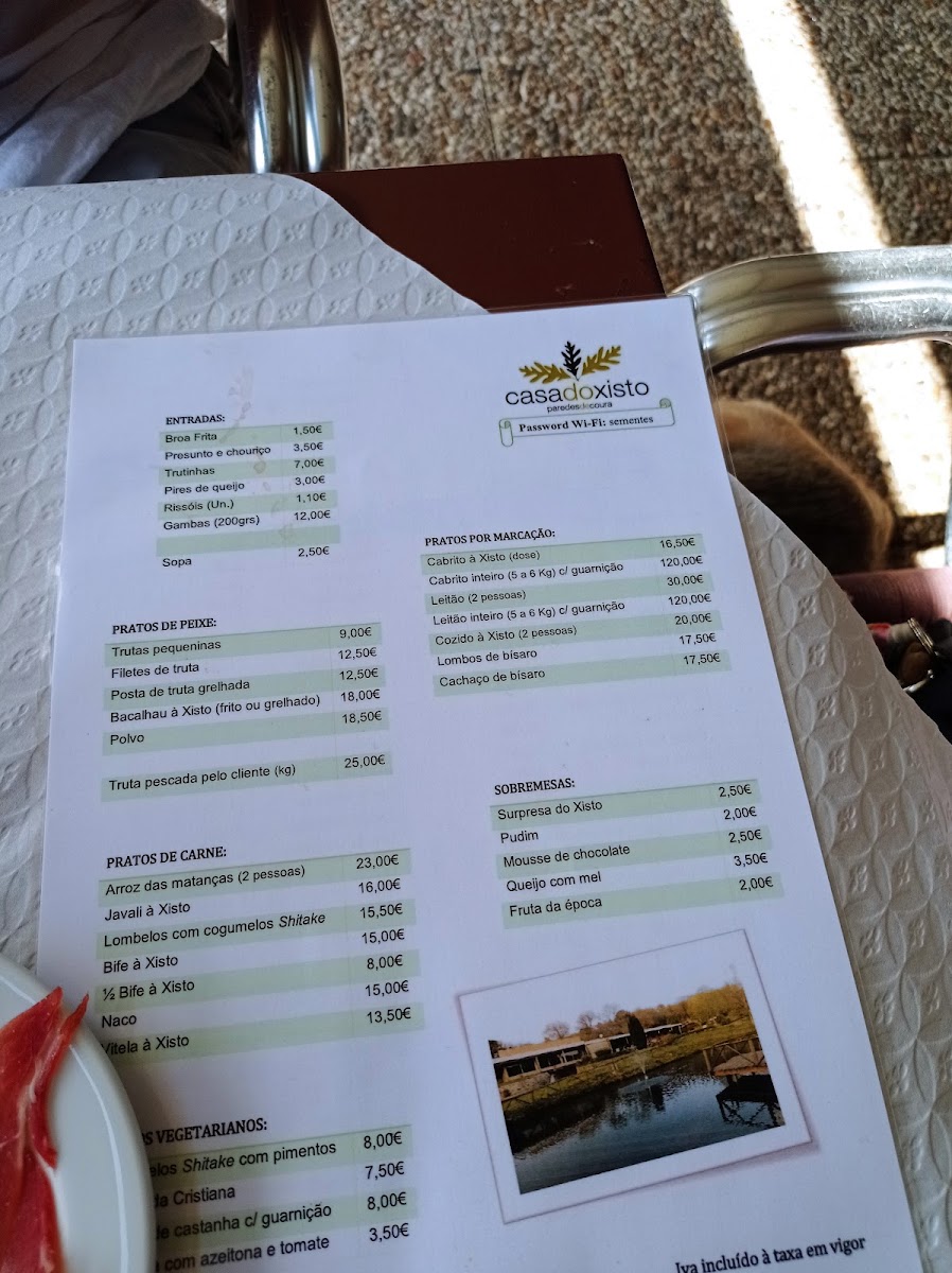 The menu at Casa Do Xisto offers a delightful selection of traditional Portuguese dishes that showcase the rich flavors of the region. Among the standout items is the Javali à Xisto, a hearty wild boar dish that is cooked to perfection, offering a tender and savory experience. For those looking for something more casual, the Prego Em Pão, a Portuguese-style steak sandwich, is a delicious and satisfying choice.